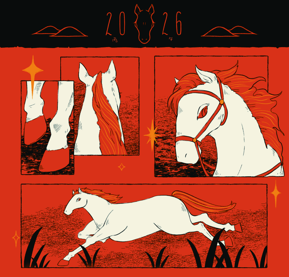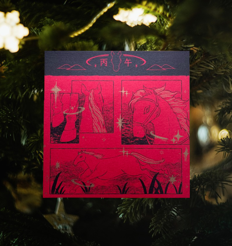 85 朝星奔馳 馬踏春風 2026迎接馬年到來,我用Risograph印刷印了兩款小斗方,分別是朝星奔馳和馬踏春風。選紙使用的赤銀河紙閃閃亮光,加上重色的黑墨和代表喜慶的金墨,非常的有質感。感謝誌造所 Ziner Studio協助印刷。 在畫圖的時候也想過用白紙搭配紅/黑/金墨去呈現,視覺上應該也是不錯,不過最後實際印刷時沒有被採用。 構思斗方圖時想過的配色之一 總之如果有喜歡的朋友歡迎到商場購買。 2026馬年小斗方 喜歡這篇文章嗎? 如果你喜歡我的文章,歡迎透過各種方式贊助我。你可以透過綠界贊助或Kofi贊助,使用我的微圖庫內容,委託畫圖或購買我的周邊商品
