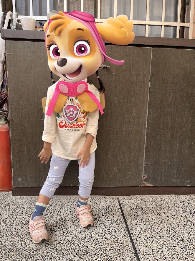 肉球很迷汪汪隊的天天,早早就決定了今年萬聖節要扮演天天。