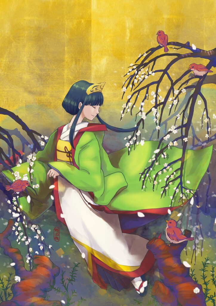 She takes the form of a golden bird.